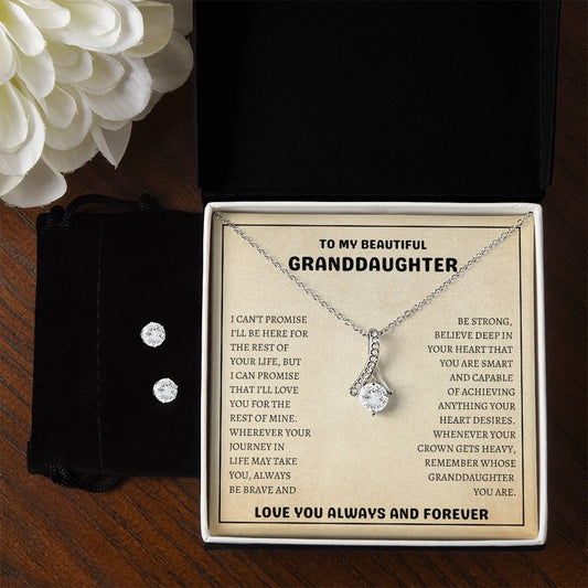 To My Beautiful Granddaughter | Always Be Brave And Be Strong | Alluring Beauty Necklace & Earring Set